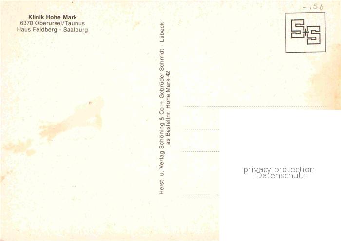 72666404 Oberursel Taunus Klinik Hohe Mark Haus Feldberg Saalburg postalisch nicht gelaufen Erhaltung siehe scans [FriedD77] KatCode: 11110006434008