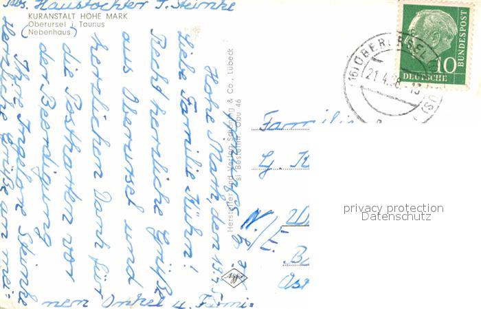 72844492 alte Postkarte Oberursel Taunus Kuranstalt Hohe Mark postalisch gelaufen Erhaltung siehe scans [KathaD81] KatCode: 11110006434008