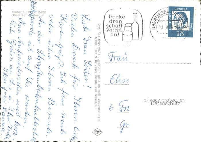 72100752 alte Postkarte Oberursel Taunus Kuranstalt Hohe Mark postalisch gelaufen Erhaltung siehe scans KatCode: 11110006434008