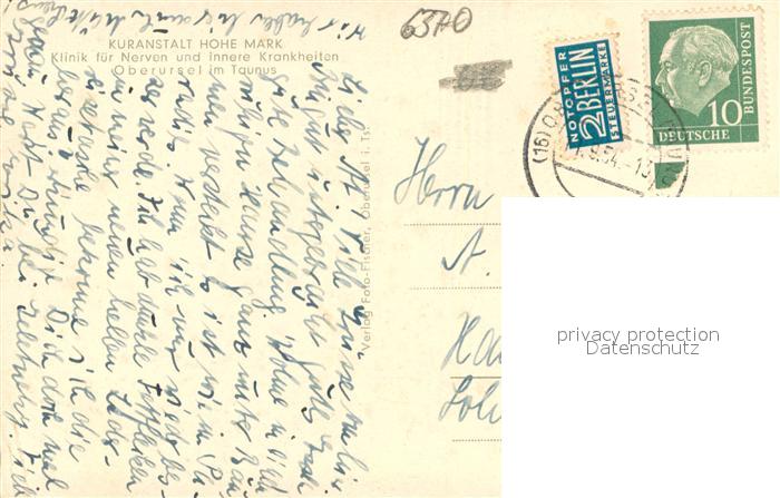 73705466 alte Postkarte Oberursel Taunus Kuranstalt Hohe Mark postalisch gelaufen Erhaltung siehe scans [LiesaD40] KatCode: 11110006434008