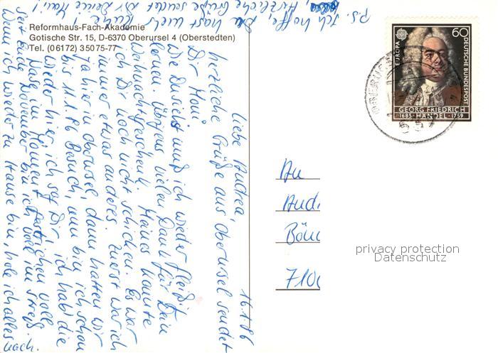 73110454 alte Postkarte Oberursel Taunus Reformhaus-Fach-Akademie postalisch gelaufen Erhaltung siehe scans [NatalD47] KatCode: 11110006434008