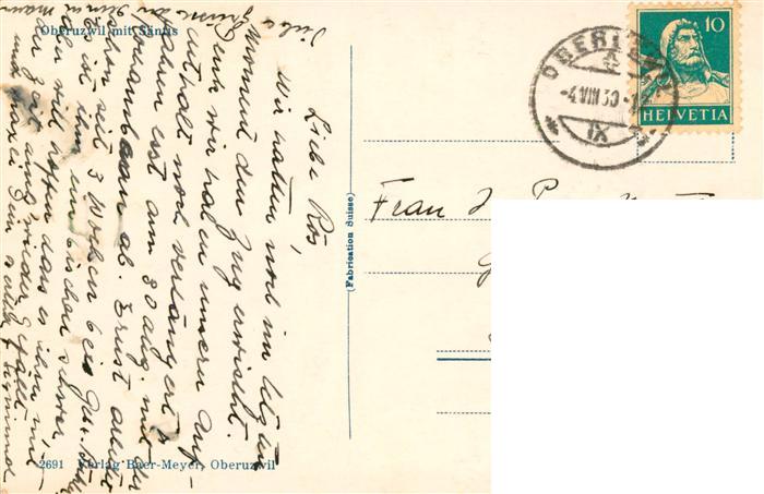 13934615 alte Postkarte Oberuzwil SG Panorama mit Saentis postalisch gelaufen Erhaltung siehe scans [FriedD77] KatCode: 11470190595916
