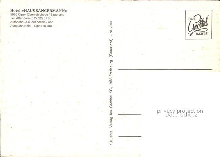 Oberveischede Hotel Haus Sangermann postalisch nicht gelaufen Erhaltung siehe scans