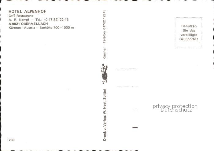 12570872 Obervellach Kaernten Hotel Alpenhof postalisch nicht gelaufen Erhaltung siehe scans [NatalD47] KatCode: 11390212020627
