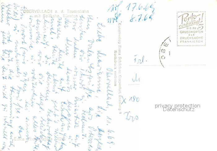 72869381 alte Postkarte Obervellach Kaernten Luftseilbahn postalisch gelaufen Erhaltung siehe scans [NatalD47] KatCode: 11390212020627