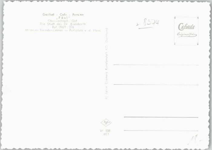 40221892 Oberviechtach Gasthof Cafe Poesl ungelaufen ca. 1965 KatCode 11110009376151