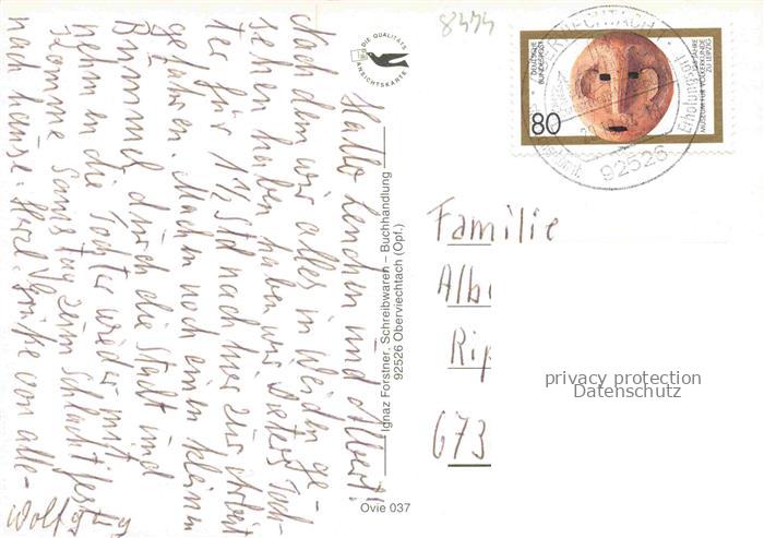 74052535 alte Postkarte Oberviechtach Kirche Panorama Gedenkstein Burgruine Maibaum postalisch gelaufen Erhaltung siehe scans [WerneD78] KatCode: 11110009376151