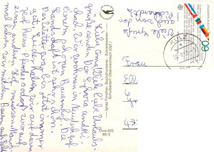 73888403 alte Postkarte Oberviechtach Kirche Panorama Gedenkstein Burgturm Maibaum Panorama postalisch gelaufen Erhaltung siehe scans [FriedD77] KatCode: 11110009376151