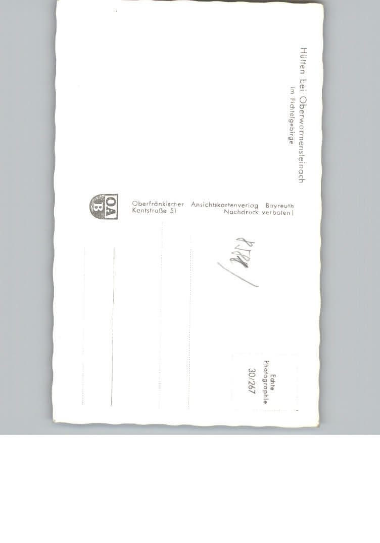 31170698 Oberwarmensteinach postalisch nicht gelaufen KatCode: 11110009472198