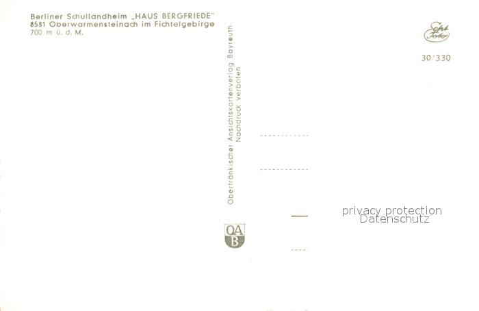 43362454 Oberwarmensteinach Berliner Schullandheim Haus Bergfriede postalisch nicht gelaufen Erhaltung siehe scans [WerneD78] Wern Katcode 11110009472198
