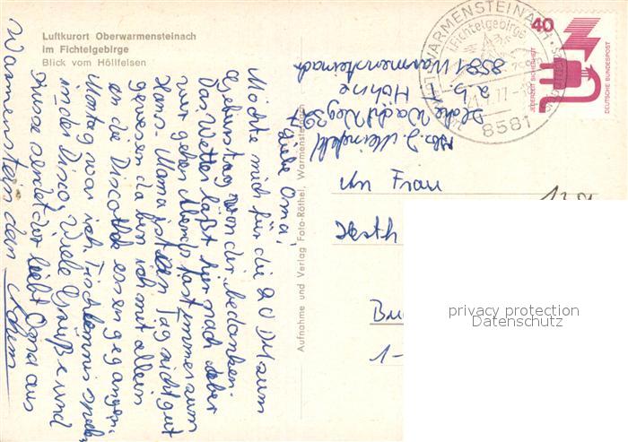 73213537 alte Postkarte Oberwarmensteinach Blick vom Hoellfelsen postalisch gelaufen Erhaltung siehe scans [FriedD77] KatCode: 11110009472198