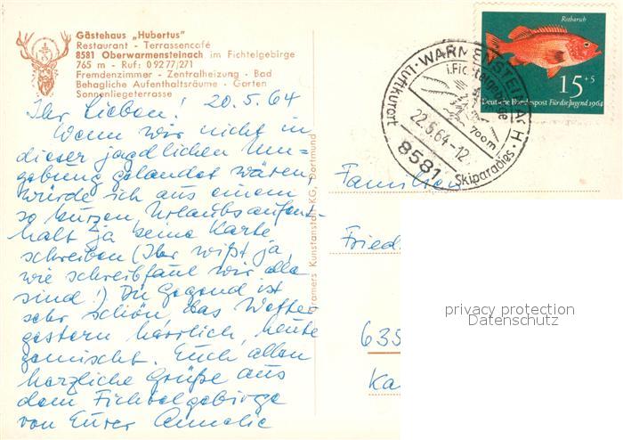 73155897 alte Postkarte Oberwarmensteinach Gaestehaus Hubertus postalisch gelaufen Erhaltung siehe scans [FriedD77] KatCode: 11110009472198
