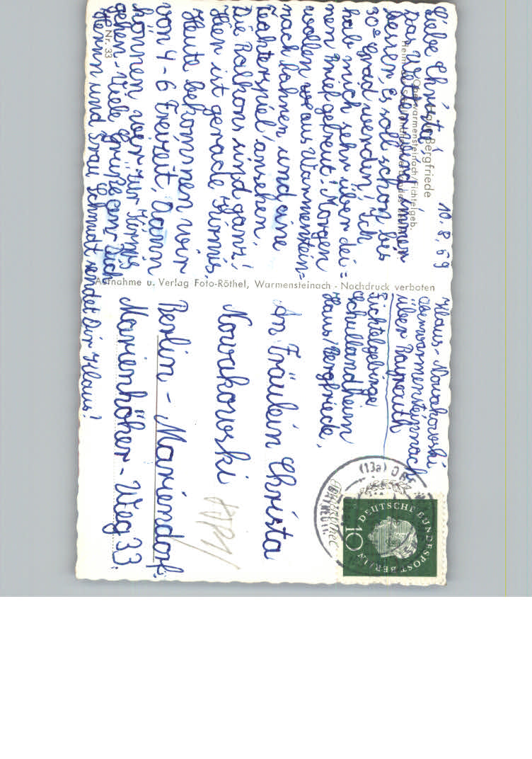 31163523 Oberwarmensteinach Haus Bergfriede postalisch nicht gelaufen KatCode: 11110009472198