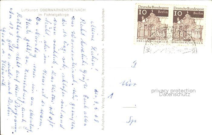 72419402 alte Postkarte Oberwarmensteinach Panorama postalisch gelaufen Erhaltung siehe scans KatCode: 11110009472198