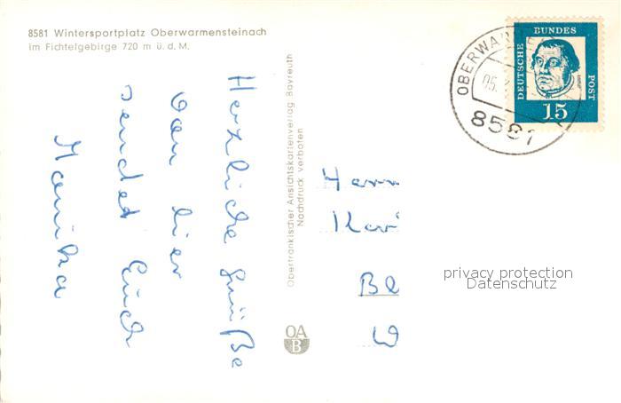 43361701 alte Postkarte Oberwarmensteinach Panorama postalisch gelaufen Erhaltung siehe scans [WerneD78] KatCode: 11110009472198