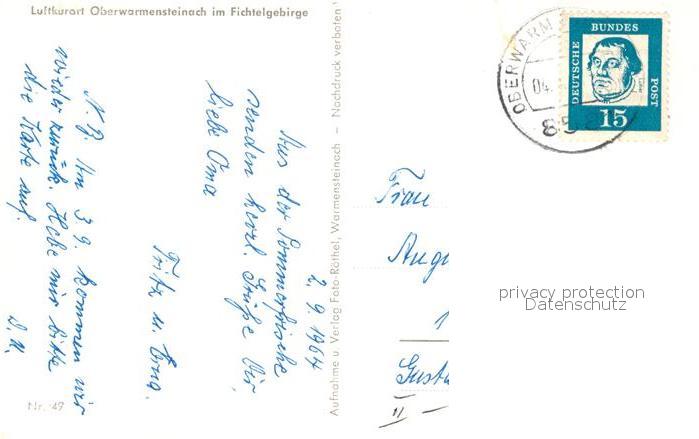 43347668 alte Postkarte Oberwarmensteinach Teilansicht mit Kirche postalisch gelaufen Erhaltung siehe scans [WerneD78] KatCode: 11110009472198