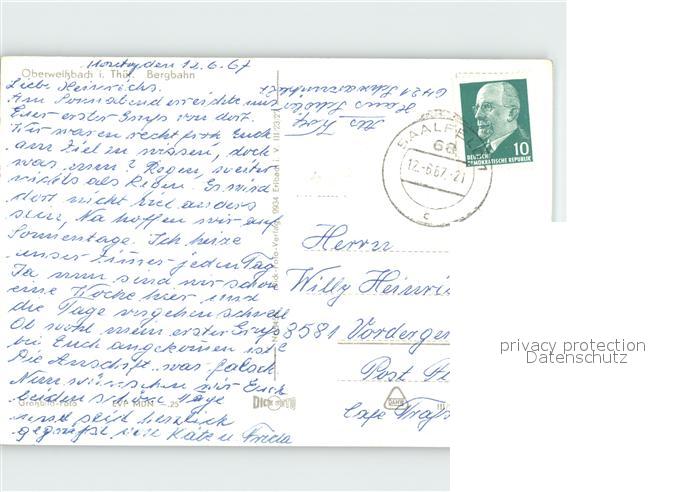 72300767 alte Postkarte Oberweissbach Bergbahn postalisch gelaufen Erhaltung siehe scans KatCode: 11110016073065