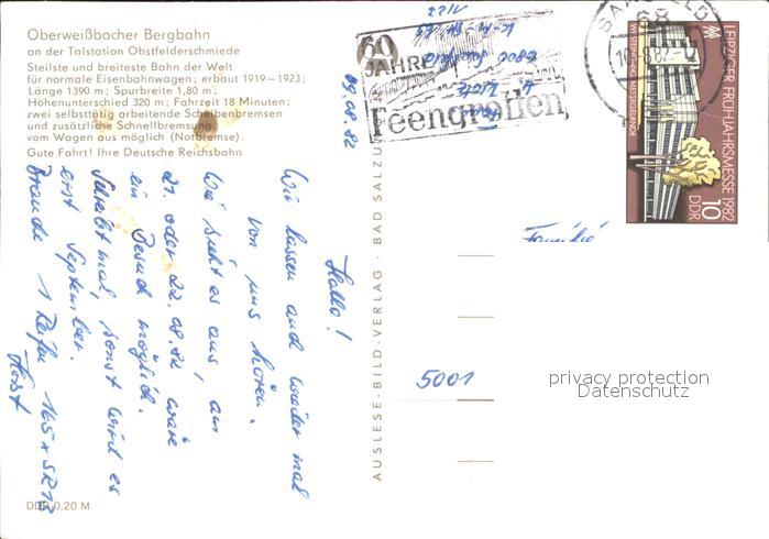 71972612 alte Postkarte Oberweissbach Bergbahn an der Talstation Obstfelderschmiede postalisch gelaufen Erhaltung siehe scans KatCode: 11110016073065