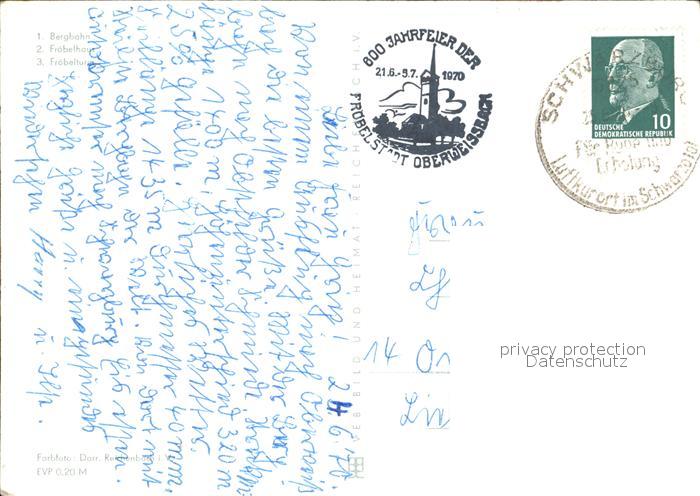 72378351 alte Postkarte Oberweissbach Bergbahn Froebelhaus Froebelturm postalisch gelaufen Erhaltung siehe scans KatCode: 11110016073065