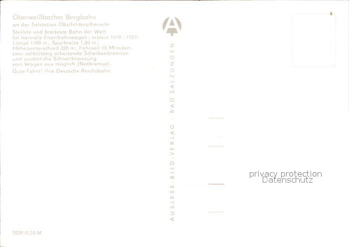 72262167 Oberweissbach Bergbahn Talstation Obstfelderschmiede postalisch nicht gelaufen Erhaltung siehe scans KatCode: 11110016073065