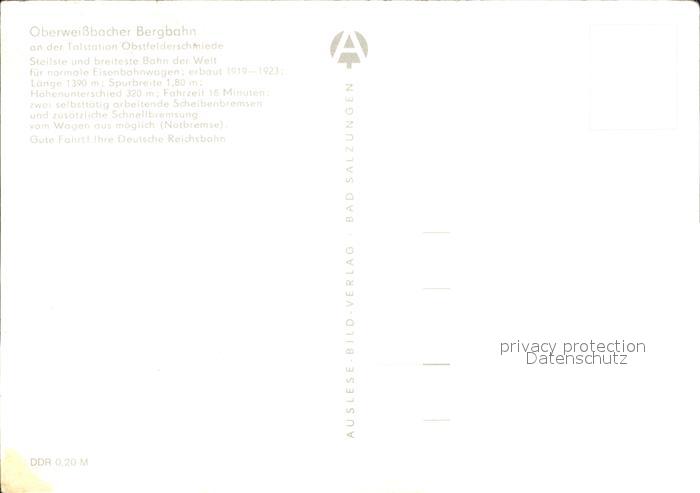 72418417 Oberweissbach Bergbahn Talstation Obstfelderschmiede postalisch nicht gelaufen Erhaltung siehe scans KatCode: 11110016073065
