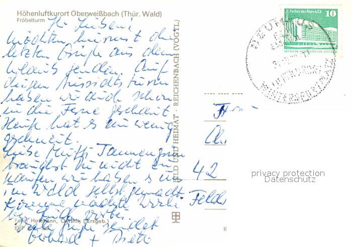 72811551 alte Postkarte Oberweissbach Froebelturm postalisch gelaufen Erhaltung siehe scans [FriedD77] KatCode: 11110016073065