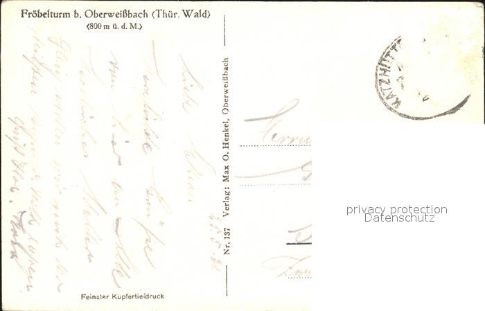 72509733 alte Postkarte Oberweissbach Froebelturm postalisch gelaufen Erhaltung siehe scans KatCode: 11110016073065