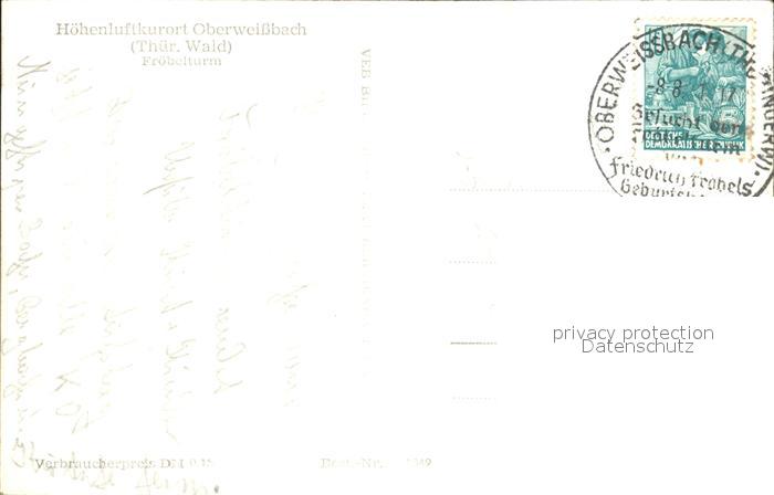 72208698 alte Postkarte Oberweissbach Froebelturm postalisch gelaufen Erhaltung siehe scans KatCode: 11110016073065