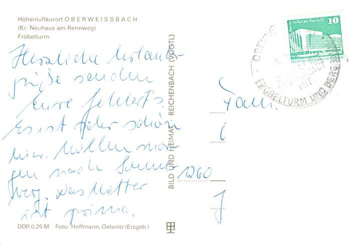 73904097 alte Postkarte Oberweissbach Froebelturm postalisch gelaufen Erhaltung siehe scans [WerneD78] KatCode: 11110016073065