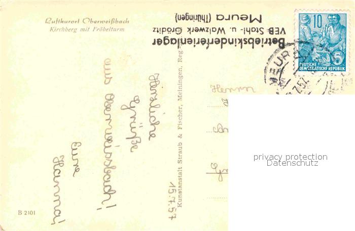 72641551 alte Postkarte Oberweissbach Kirchberg Froebelturm postalisch gelaufen Erhaltung siehe scans [NatalD47] KatCode: 11110016073065