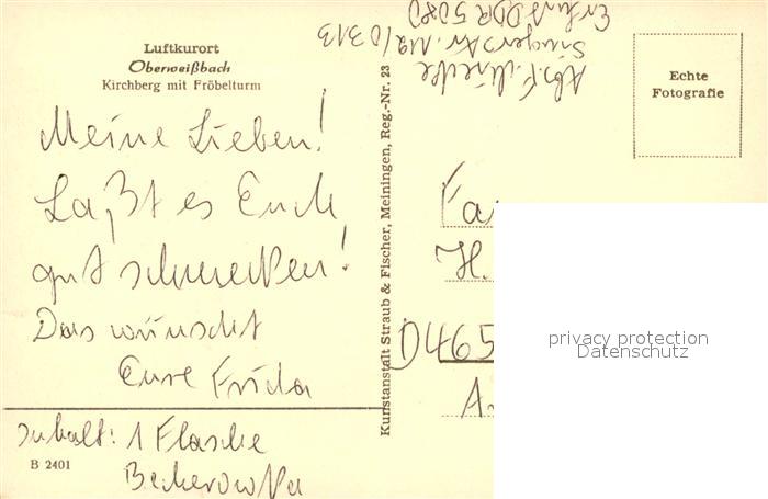 73096931 alte Postkarte Oberweissbach Kirchberg Froebelturm postalisch gelaufen Erhaltung siehe scans [KathaD81] KatCode: 11110016073065