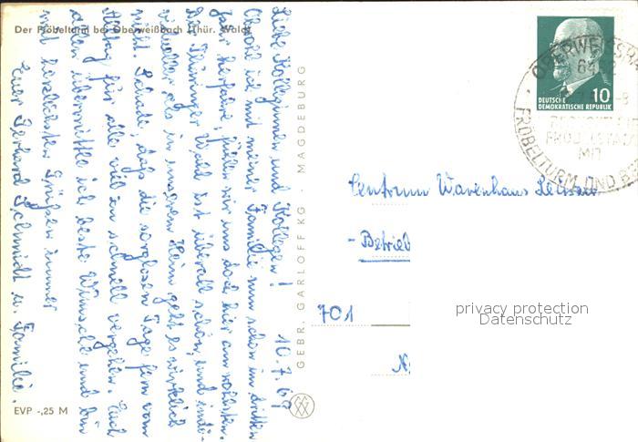 72153761 alte Postkarte Oberweissbach Proebelturm postalisch gelaufen Erhaltung siehe scans KatCode: 11110016073065