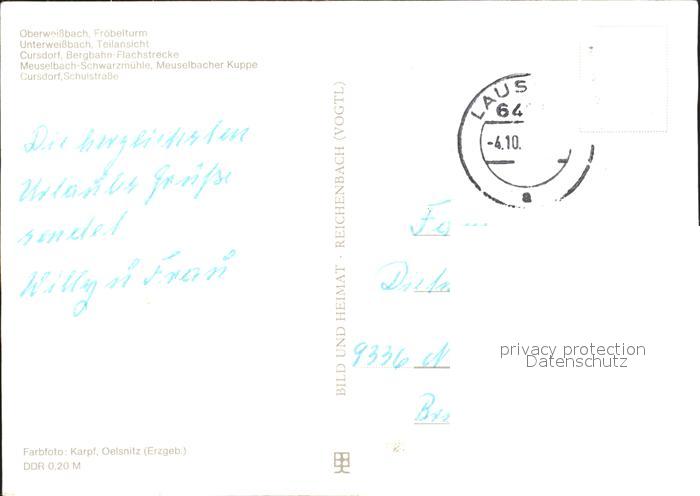 72383283 alte Postkarte Oberweissbach Unterweissbach Cursdorf Bergbahn Meuselbach postalisch gelaufen Erhaltung siehe scans KatCode: 11110016073065
