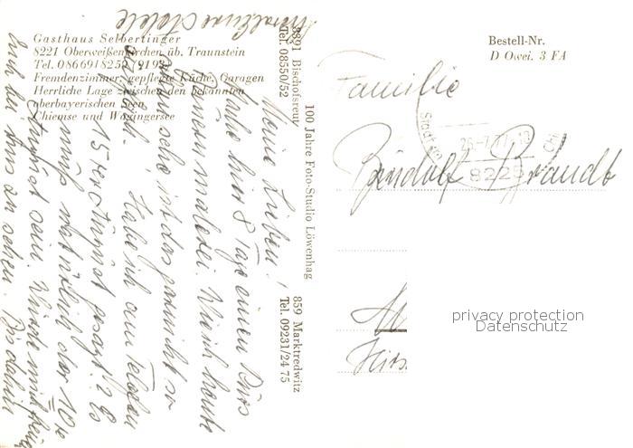 73859248 alte Postkarte Oberweissenkirchen Gasthaus Pension Selbertinger Gastraeume Strand Kirche postalisch gelaufen Erhaltung siehe scans [WerneD78] KatCode: 11110009189134