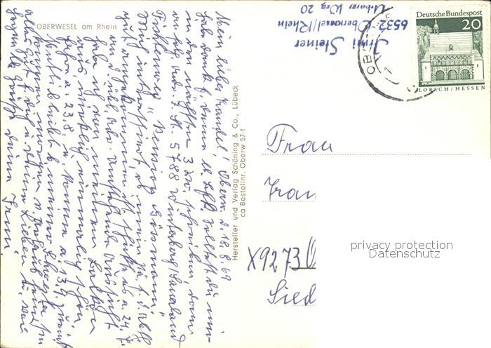 72423580 alte Postkarte Oberwesel Rhein Fliegeraufnahme postalisch gelaufen Erhaltung siehe scans KatCode: 11110007140112