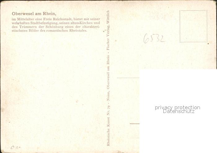 41601099 Oberwesel Rhein Gesamtansicht Turm Kirche Burg Schönburg Künstlerkarte KatCode 11110007140112