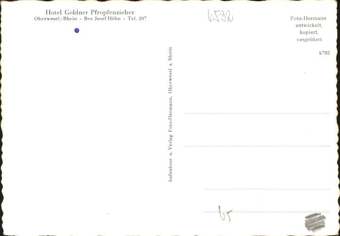 41259759 Oberwesel Rhein Hotel Goldner Propfenzieher KatCode 11110007140112