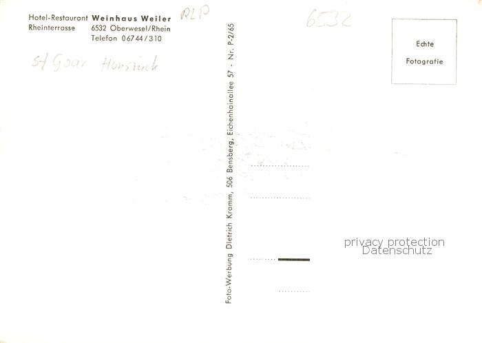 73852864 Oberwesel Rhein Hotel Restaurant Weinhaus Weiler Panorama Gaststube postalisch nicht gelaufen Erhaltung siehe scans [WerneD78] KatCode: 11110007140112
