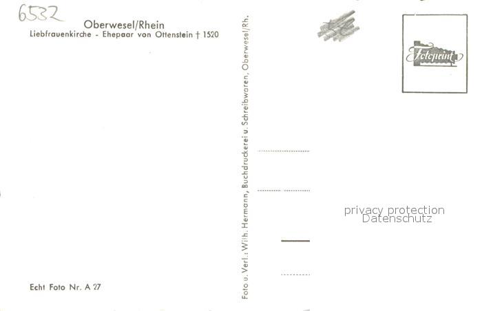 73691187 Oberwesel Rhein Liebfrauenkirche Ehepaar von Ottenstein Statue postalisch nicht gelaufen Erhaltung siehe scans [FriedD77] KatCode: 11110007140112