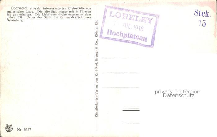 72118167 Oberwesel Rhein mit Liebfrauenkirche und Ruine Schoenburg postalisch nicht gelaufen Erhaltung siehe scans KatCode: 11110007140112