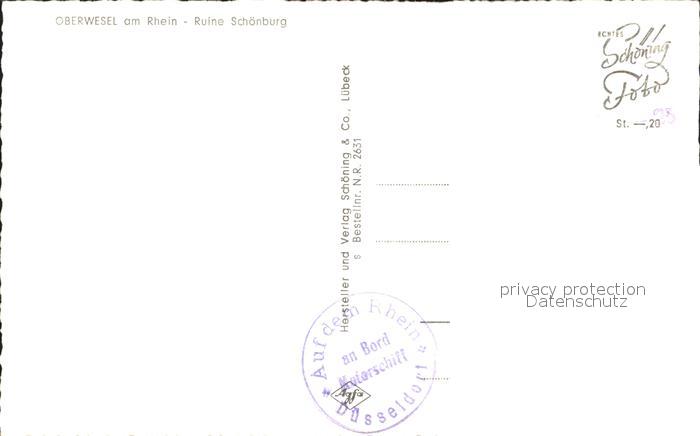72074839 Oberwesel Rhein Panorama mit Ruine Schoenburg Eisenbahn postalisch nicht gelaufen KatCode: 11110007140112