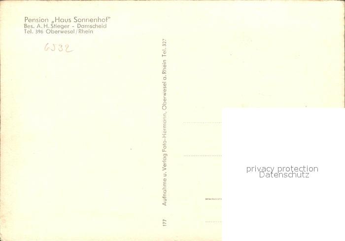 31841606 Oberwesel Rhein Pension Haus Sonnenhof postalisch nicht gelaufen Erhaltung siehe scans KatCode: 11110007140112