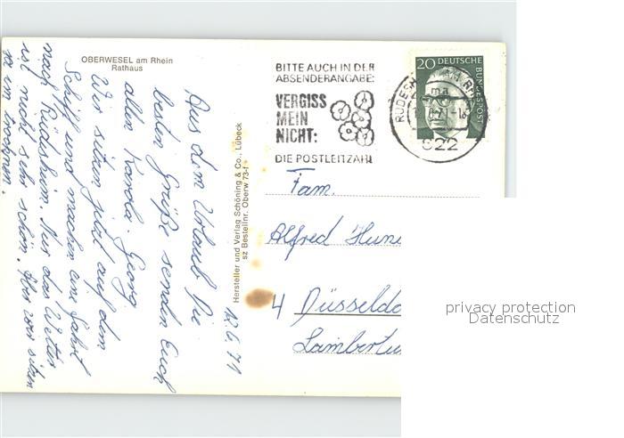 72135389 alte Postkarte Oberwesel Rhein Rathaus postalisch gelaufen Erhaltung siehe scans KatCode: 11110007140112