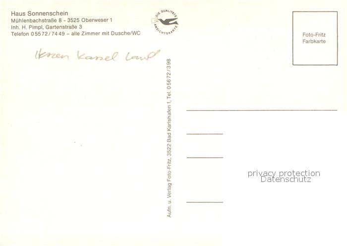 73658688 Oberweser Hessen Gaestehaus Pension Haus Sonnenschein Gastraum Fremdenzimmer postalisch nicht gelaufen Erhaltung siehe scans [FriedD77] KatCode: 11110006633021