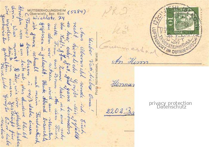 74039198 alte Postkarte Oberwiehl Muettererholungsheim postalisch gelaufen Erhaltung siehe scans [FriedD77] KatCode: 11110005374048