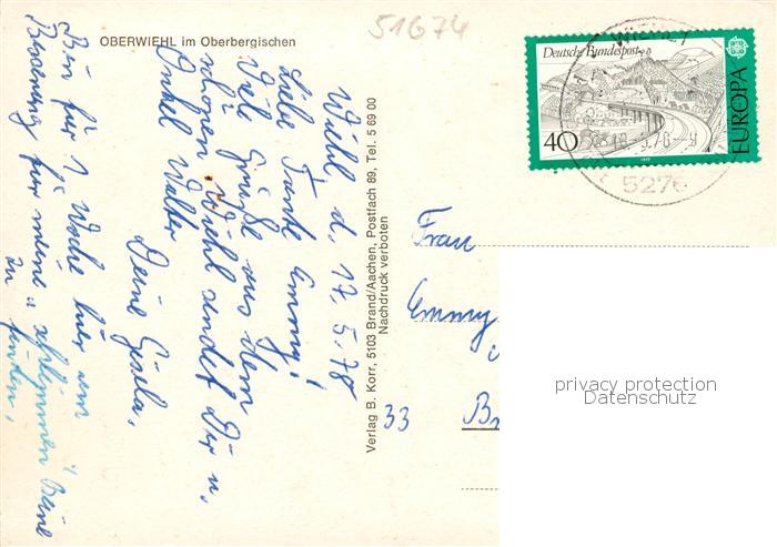73866099 alte Postkarte Oberwiehl Panorama postalisch gelaufen Erhaltung siehe scans [WerneD78] KatCode: 11110005374048
