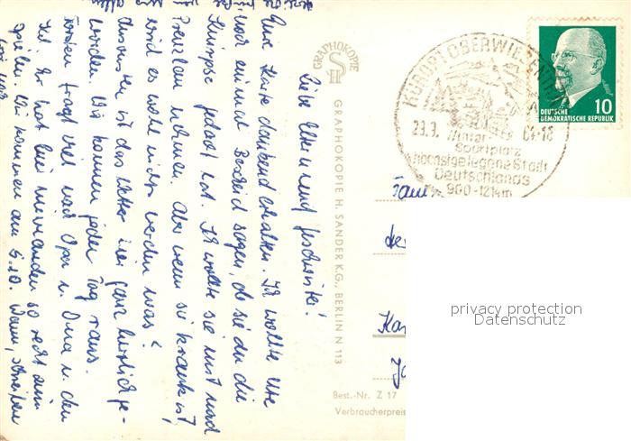73139499 alte Postkarte Oberwiesenthal Erzgebirge Bergheim Schoenjungferngrund postalisch gelaufen Erhaltung siehe scans [NatalD47] KatCode: 11110014171240