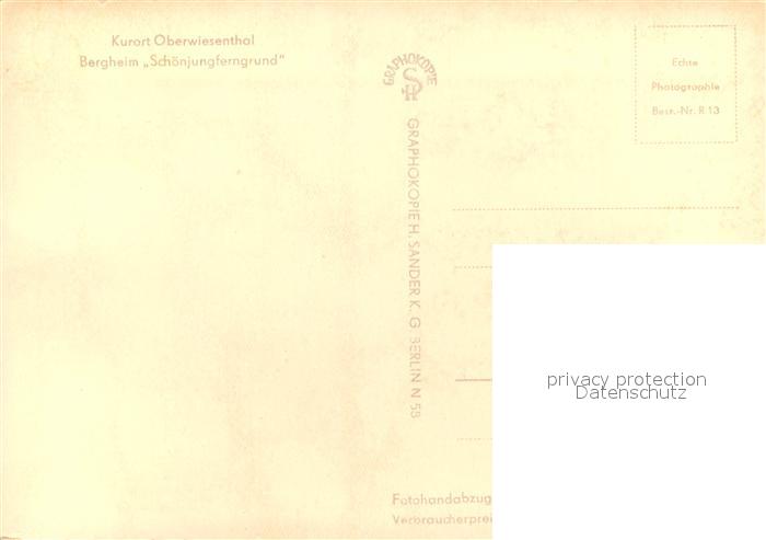 72920479 Oberwiesenthal Erzgebirge Bergheim Schoenjungferngrund postalisch nicht gelaufen Erhaltung siehe scans [PaolaD17] KatCode: 11110014171240