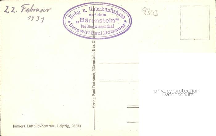 72167586 Oberwiesenthal Erzgebirge Berghotel auf dem Baerenstein Fliegeraufnahme postalisch nicht gelaufen Erhaltung siehe scans KatCode: 11110014171240
