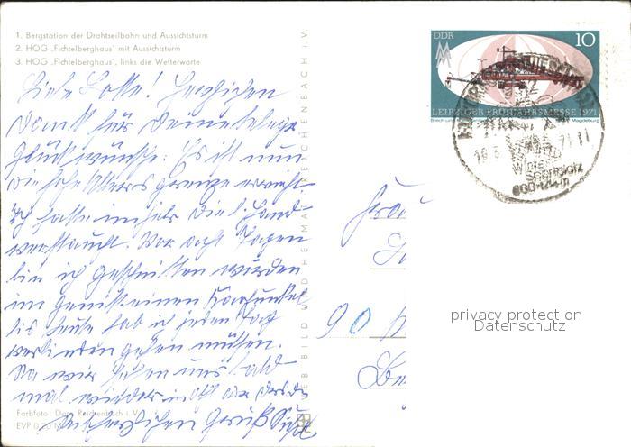 72372261 alte Postkarte Oberwiesenthal Erzgebirge Bergstation Drahtseilbahn Aussichtsturm HOG Fichtelberghaus Wetterwarte Winterlandschaft postalisch gelaufen Erhaltung siehe scans KatCode: 11110014171240